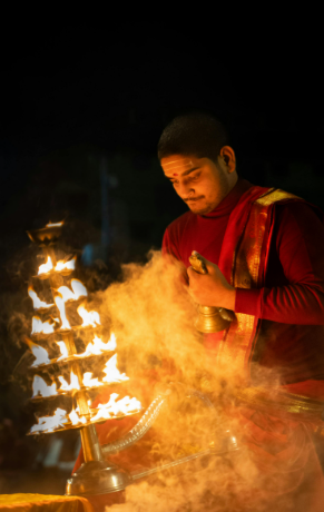 브라만은 특정한 주문과 기도를 외우며, 제물을 불 속에 던지거나 연기를 발생시키는 등의 작업을 통해 신의 가호를 빕니다. 이 의식은 매우 엄격하게 규정된 절차와 순서에 따라 진행되며, 각 단계마다 의도와 목적이 분명히 정해져 있습니다.