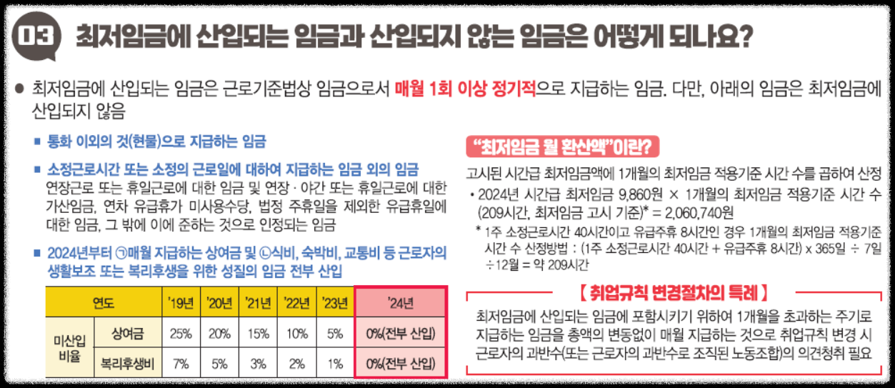 하지만 많은 아르바이트생이 주휴수당을 받지 못하는 현실을 고려하면 실제 수령액은 더 낮을 수 있습니다. 그리고 주목할만한 점은 2024년부터는 상여금과 복리후생비 전액이 최저임금에 포함된다는 점입니다.